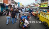 REPUBLIKA.CO.ID, TANGERANG -- Pedagang menunggu pembeli di kawasan wisata kuliner Pasar Lama, Tangerang, Banten, Senin (6/9/2021). Pemerintah memutuskan kembali melanjutkan status PPKM di Pulau Jawa-Bali sejak Selasa (7/9) hingga Senin 13 September 2021.