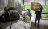 Petugas membawa sampah plastik untuk didaur ulang di Pusat Daur Ulang Cicabe, Jatihandap, Kecamatan Mandalajati, Kota Bandung, Selasa (7/9). Pusat Daur Ulang Cicabe tersebut mampu mengolah dan mendaur ulang 500 kilogram hingga 1 ton sampah anorganik per hari, dengan tujuan membantu penanganan permasalahan sampah di Kota Bandung sekaligus program percepatan pengendalian dan kerusakan Daerah Aliran Sungai (DAS) Citarum. (FOTO : REPUBLIKA/ABDAN SYAKURA)
