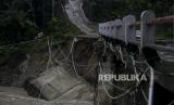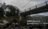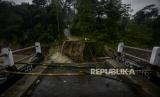 REPUBLIKA.CO.ID, BOGOR -- Kondisi jembatan perbatasan Kecamatan Sukajaya dan Kecamatan Nanggung yang terputus di Desa Urug, Sukajaya, Kabupaten Bogor, Jawa Barat, Selasa (7/9). Ambruknya jembatan tersebut akibat banjir bandang aliran Sungai Cidurian dan menyebabkan akses jalan warga antar Kecamatan terputus.