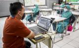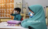 REPUBLIKA.CO.ID,BANDUNG -- Murid mengikuti kegiatan belajar mengajar saat hari pertama pembelajaran tatap muka (PTM) di SD Ar Rafi, Jalan Sekejati, Kiaracondong, Kota Bandung, Rabu (8/9).