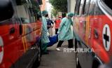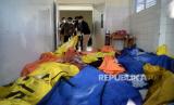 REPUBLIKA.CO.ID, TANGERANG -- Petugas membawa kantong jenazah korban kebakaran Lembaga Pemasyarakatan (Lapas) Kelas I Tangerang untuk dinaikan kedalam ambulance di RSUD Kabupaten Tangerang, Banten, Rabu (8/9). Sebanyak 41 warga binaan tewas akibat kebakaran yang membakar Blok C2 pada Rabu dini hari tersebut.