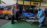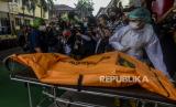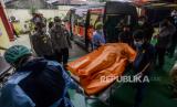 Petugas membawa kantong jenazah korban kebakaran Lembaga Permasyarakatan (Lapas) Kelas 1 Tangerang di RS Polri Kramat Jati, Jakarta, Rabu (8/9). Sebanyak tujuh mobil ambulans membawa 41 jenazah yang merupakan warga binaan pemasyarakatan (WBP) Lapas Kelas 1 Tangerang untuk diidentifikasi dengan metode Disaster Victim Identification (DVI). (FOTO : Republika/Putra M. Akbar)