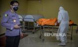REPUBLIKA.CO.ID, JAKARTA -- Petugas memberikan nomor identitas ke kantong jenazah korban kebakaran Lembaga Permasyarakatan (Lapas) Kelas 1 Tangerang di RS Polri Kramat Jati, Jakarta, Rabu (8/9).