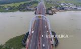 REPUBLIKA.CO.ID, OGAN ILIR -- Sejumlah kendaraan melintas di simpang susun Jalan Tol Trans Sumatera (JTTS) ruas Kayu Agung - Palembang (Kapal) di Desa Ibul Besar III, Pemulutan, Ogan Ilir (OI), Sumatera Selatan, Rabu (8/9/2021).