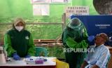 Tenaga kesehatan puskesmas Kecamatan Menteng melakukan tes usap antigen dan PCR gratis kepada warga dalam pelaksaan Program Swab Seru Keliling (Seruling) di Masjid Jami Assuhaimiah, Kebon Sirih, Jakarta, Kamis (9/9). Program ini diharapkan dapat memutus penularan Covid-19 dari pasien tanpa gejala.Prayogi/Republika (FOTO : Prayogi/Republika.)