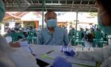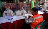 Warga mendaftar untuk mengikuti tes usap antigen dan PCR gratis dalam pelaksaan Program Swab Seru Keliling (Seruling) di Masjid Jami Assuhaimiah, Kebon Sirih, Jakarta, Kamis (9/9). Program ini diharapkan dapat memutus penularan Covid-19 dari pasien tanpa gejala.Prayogi/Republika (FOTO : Prayogi/Republika.)