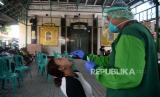 Tenaga kesehatan puskesmas Kecamatan Menteng melakukan tes usap antigen dan PCR gratis kepada warga dalam pelaksaan Program Swab Seru Keliling (Seruling) di Masjid Jami Assuhaimiah, Kebon Sirih, Jakarta, Kamis (9/9). Program ini diharapkan dapat memutus penularan Covid-19 dari pasien tanpa gejala. (FOTO : Prayogi/Republika.)