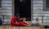 REPUBLIKA.CO.ID,HULU SUNGAI TENGAH -- Seorang warga Dayak Meratus duduk di depan rumah bersama anaknya di lokasi perumahan Komunitas Adat Terpencil (KAT) di Dusun Danau Canting, Kabupaten Hulu Sungai Tengah, Kalimantan Selatan, Kamis (9/9/2021).