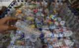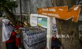 REPUBLIKA.CO.ID, TANGSEL -- Warga membuang sampah ke dalam tempat sampah di kawasan Situ Gintung, Tangerang Selatan, Banten, Kamis (9/9). Tempat sampah yang terbuat dari kumpulan botol plastik tersebut khusus menampung sampah jenis botol plastik di lingkungan Situ Gintung yang hasilnya akan dimanfaatkan untuk proses daur ulang. Republika/Putra
