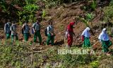 REPUBLIKA.CO.ID, CIAMIS -- Sejumlah siswa berjalan kaki saat pulang ke rumah di Dusun Ciakar, Kabupaten Ciamis, Jawa Barat, Kamis (9/9/2021). Pemerintah Provinsi Jawa Barat meluncurkan program Ngabring ka Sakola (Ngabaso) atau gerakan berjalan kaki ke sekolah secara berkelompok agar tercipta rasa aman dan selamat bagi anak, saat pergi ke sekolah dan pulang ke rumah.