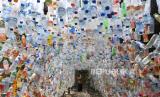 REPUBLIKA.CO.ID, GRESIK -- Relawan mengaitkan botol plastik bekas saat pembuatan instalasi Museum Plastik di Ecological Observation and Wetlands Conservation (Ecoton) di Gresik, Jawa Timur, Kamis (9/9/2021).
