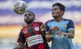 Pesepak bola Persela Lamongan Nasir (kanan) berebut bola dengan pesepak bola Persipura Jayapura Elisa Yahya Basna (kiri) dalam lanjutan Liga 1 2021-2022 di Stadion Wibawa Mukti, Cikarang, Kabupaten Bekasi, Jawa Barat, Jumat (10/9/2021). Persela Lamongan menang atas Persipura Jayapura dengan skor akhir 1-0. (FOTO : ANTARA/M Risyal Hidayat/wsj.)
