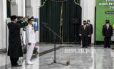 Gubernur Jawa Barat Ridwan Kamil membacakan surat keputusan saat upacara pengambilan sumpah jabatan dan pelantikan Wali Kota Tasikmalaya di Gedung Sate, Kota Bandung, Jumat (10/9). Muhammad Yusuf dilantik sebagai Wali Kota Tasikmalaya oleh Gubernur Jawa Barat Ridwan Kamil dengan sisa masa jabatan periode 2017-2022. Foto: Republika/Abdan Syakura (FOTO : REPUBLIKA/ABDAN SYAKURA)
