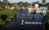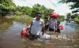 REPUBLIKA.CO.ID,KATINGAN -- Warga menerobos banjir yang merendam permukiman sekitar rumahnya di Jalan Kelud, Kasongan, Kabupaten Katingan, Kalimantan Tengah, Jumat (10/9/2021).