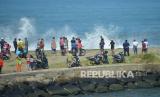 REPUBLIKA.CO.ID, PADANG -- Ombak menerjang batu grip di Pantai Muara Lasak, Padang, Sumatera Barat, Sabtu (11/9/2021). Badan Meteorologi Klimatologi dan Geofisika (BMKG), Sabtu (11/9/2021) mengimbau masyarakat yang tinggal dan beraktivitas di pesisir pantai agar mewaspadai gelombang tinggi lebih dari 4 hingga 6 meter terutama di samudera hindia.