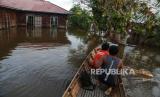 REPUBLIKA.CO.ID, KATINGAN -- Warga beraktifitas di permukiman sekitar rumahnya yang terendam banjir di Desa Petak Bahandang, Kabupaten Katingan, Kalimantan Tengah, Sabtu (11/9/2021).