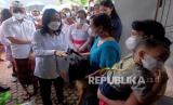 REPUBLIKA.CO.ID, DENPASAR -- Menteri Pemberdayaan Perempuan dan Perlindungan Anak (PPPA) I Gusti Ayu Bintang Darmawati didampingi Wali Kota Denpasar I Gusti Ngurah Jaya Negara memberikan paket bantuan kepada seorang ibu yang harus mengasuh tiga anaknya karena suaminya meninggal dunia akibat terpapar COVID-19 saat penyerahan bantuan spesifik bagi anak dan perempuan kepala keluarga terdampak COVID-19 di Denpasar, Bali, Sabtu (11/9/2021).