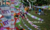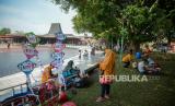 Pengunjung beraktivitas di area Taman Mini Indonesia Indah (TMII), Jakarta, Ahad (12/9). Kementerian Pariwisata dan Ekonomi Kreatif memberikan izin sejumlah tempat wisata untuk menggelar uji coba pembukaan tempat wisata di Jakarta diantaranya Taman Mini Indonesia Indah (TMII), Ancol, dan Setu Babakan. Taman Mini Indonesia Indah (TMII) membuka sejumlah wahana pada masa ujicoba dengan membatasi kapasitas maksimum 50 persen serta penerapan protokol kesehatan yang ketat. (FOTO : Republika/Thoudy Badai)
