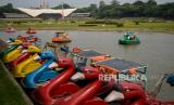REPUBLIKA.CO.ID, JAKARTA -- Pengunjung menaiki wahana perahu angsa di kawasan Taman Mini Indonesia Indah (TMII), Jakarta, Ahad (12/9).