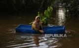 REPUBLIKA.CO.ID, KATINGAN -- Warga menerobos banjir yang merendam permukiman sekitar rumahnya di Desa Petak Bahandang, Kabupaten Katingan, Kalimantan Tengah, Sabtu (11/9).