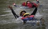REPUBLIKA.CO.ID, TANGERANG -- Sejumlah relawan mengikuti pelatihan pertolongan di dalam air di Bayur, Tangerang, Banten, Ahad (12/9/2021).