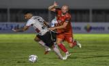 Pesepak bola Madura United FC Rafael Silva (kiri) berebut bola dengan pesepak bola PSM Makassar Hasim Kipuw (kanan) dalam lanjutan Liga 1 2021-2022 di Stadion Madya Gelora Bung Karno, Jakarta, Ahad (12/9/2021). (FOTO : ANTARA/Galih Pradipta)