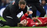Harvey Elliott mengerang setelah dilanggar keras oleh gelandang Leeds United Pascal Struijk pada laga pada Liga Premier Inggris antara Leeds United dan Liverpool di Elland Road, Leeds, Inggris, Ahad, (12/9). (FOTO : REUTERS/LEE SMITH)
