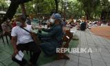 REPUBLIKA.CO.ID, SURABAYA -- Warga mengantre untuk mendapatkan vaksinasi COVID-19 di Kebun Binatang Surabaya (KBS), Surabaya, Jawa Timur, Senin (13/9/2021). Vaksinasi COVID-19 yang digelar di area Kebun Binatang Surabaya itu menargetkan 1.500 penerima vaksin.