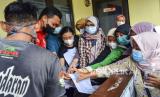 REPUBLIKA.CO.ID, CIAMIS -- Sejumlah warga berebut formulir pendaftaran saat mengikuti vaksinasi massal COVID-19 yang digelar Polres Ciamis di Klinik Pratama, Kabupaten Ciamis, Jawa Barat, Senin (13/9/2021).