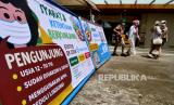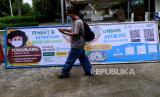Papan informasi memasuki lokasi wisata Gembira Loka Zoo (GL Zoo) saat uji coba pembukaan di Yogyakarta, Senin (13/9). GL Zoo menjadi salah satu destinasi wisata yang menjadi ujicoba pembukaan oleh pemerintah saat PPKM Level 3. Namun, wisatawan harus lolos pindai barcode aplikasi peduli lindungi. Atau wisatawan yang sudah divaksin, sehingga untuk anak-anak belum bisa. Selain GL Zoo di Yogyakarta yang mendapat lampu hijau pembukaan destinasi wisata yakni Tebing Breksi dan Hutan Pinus Mangunan. (FOTO : Wihdan Hidayat / Republika)