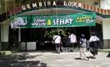 REPUBLIKA.CO.ID,YOGYAKARTA -- Wisatawan masuk ke dalam Gembira Loka Zoo (GL Zoo) saat uji coba pembukaan di Yogyakarta, Senin (13/9).