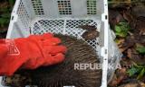 REPUBLIKA.CO.ID, SORONG -- Petugas melepasliarkan Landak Irian (Zaglossus bruijnii) di Taman Wisata Alam (TWA) Kota Sorong, Papua Barat, Selasa (14/9/2021). Balai Besar Konservasi Sumber Daya Alam (BBKSDA) Papua Barat melepasliarkan sejumlah satwa endemik Papua hasil penggagalan penyelundupan diantaranya Burung Mino Muka Kuning (Mino Dumontii), Burung Merpati Hutan (Ducula Sp), Burung Walik (Ptilinopus Sp) dan Landak Irian (Zaglossus bruijnii).