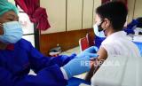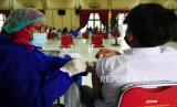 REPUBLIKA.CO.ID, BANDUNG -- Peserta vaksinasi yang terdiri dari remaja dan pelajar di ruang obeservasi saat Gebyar Vaksin Covid-19 usia 12 tahun ke atas bersama UPT Puskesmas Pasirkaliki dan Kelurahan Pajajaran di Graha Bhayangkara, Jalan Cicendo, Kota Bandung, Selasa (14/9). Kegiatan tersebut digelar guna percepatan terbentuknya herd immunity atau kekebalan kelompok khususnya bagi remaja yang saat ini sudah mulai mengikuti pembelajaran tatap muka (PTM).