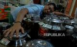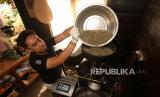 Proses roasting di tempat produksi Dunia Kopi di Pasar Santa, Jakarta, Selasa (14/9). Kios kopi milik Suradi tersebut berdiri sejak tahun 2000 dengan menyediakan beragam jenis kopi Nusantara yang dipasarkan hingga mancanegara seperti Jepang, Korea, Rusia, Jerman hingga Arab Saudi. Dalam sehari Toko Dunia Kopi mampu menjual sebanyak 300 kilogram hingga 2 ton dengan harga mulai dari Rp70 hingga Rp200 ribu per kilo (FOTO : Republika/Thoudy Badai)