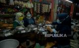 Pekerja melayani pembeli di Toko Dunia Kopi di Pasar Santa, Jakarta, Selasa (14/9). Kios kopi milik Suradi tersebut berdiri sejak tahun 2000 dengan menyediakan beragam jenis kopi Nusantara yang dipasarkan hingga mancanegara seperti Jepang, Korea, Rusia, Jerman hingga Arab Saudi. Dalam sehari Toko Dunia Kopi mampu menjual sebanyak 300 kilogram hingga 2 ton dengan harga mulai dari Rp70 hingga Rp200 ribu per kilo (FOTO : Republika/Thoudy Badai)