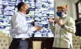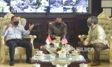 REPUBLIKA.CO.ID, SURABAYA -- Wali Kota Surabaya Eri Cahyadi berbincang dengan Konsul Jenderal Amerika Serikat untuk Surabaya Jonathan Alan saat pertemuan di Balai Kota Surabaya, Surabaya, Jawa Timur, Rabu (15/9/2021). Pertemuan tersebut membahas mengenai penanganan pandemi COVID-19 di Surabaya serta proyeksi kerja sama di bidang ekonomi dan pendidikan.