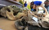 REPUBLIKA.CO.ID,ACEH JAYA -- Personel kepolisian Polres Aceh Jaya menata barang bukti kerangka Gajah Sumatera saat konferensi pers di Mapolres Aceh Jaya, Aceh, Rabu (15/9/2021).