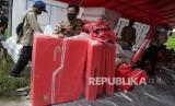 REPUBLIKA.CO.ID, PALANGKARAYA -- Anggota Taruna Siaga Bencana (Tagana) memindahkan kardus berisi makanan siap saji di posko bencana di Jalan Anoi, Palangkaraya, Kalimantan Tengah, Kamis (15/9/2021).