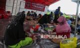 Warga bersama anggota Taruna Siaga Bencana (Tagana) menyiapkan peralatan memasak di dapur umum lapangan untuk korban banjir di Jalan Anoi, Palangkaraya, Kalimantan Tengah, Kamis (15/9/2021). Dapur umum tersebut didirikan oleh dinas sosial setempat untuk membantu menyiadakan makanan siap saji bagi korban yang terdampak banjir yang melanda di wilayah kota itu sejak satu minggu terakhir. (FOTO : Antara/Makna Zaezar)