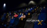 Sejumlah pengunjung duduk di kursi penonton Bioskop CGV, Grand Indonesia, Jakarta, Kamis (16/9). Pemerintah Provinsi DKI Jakarta memberikan kelonggaran dengan diperbolehkannya bioskop untuk beroperasi kembali di masa PPKM level 3 dengan kapasitas pengunjung 50 persen, penggunaan aplikasi PeduliLindungi, telah divaksinasi Covid-19 dan penerapan protokol kesehatan yang ketat. (FOTO : Republika/Putra M. Akbar)