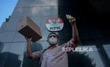 Pegawai KPK yang tidak lulus Tes Wawasan Kebangsaan (TWK) Yudi Purnomo membawa pulang perlengkapan milkinya berjalan saat meninggalkan Gedung Merah Putih KPK, Jakarta, Kamis (16/9). Komisi Pemberantasan Korupsi (KPK) akan memberhentikan sebanyak 56 pegawai KPK yang tidak lulus Tes Wawasan Kebangsaan (TWK) dalam proses alih status pegawai KPK menjadi Aparatur Sipil Negara (ASN) pada tanggal 30 September mendatang. Republika/Thoudy Badai (FOTO : Republika/Thoudy Badai)