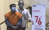 Fachriadi (kiri), pihak swasta yang terjaring Operasi Tangkap Tangan (OTT) KPK mengenakan rompi tahanan usai menjalani pemeriksaan di gedung KPK, Jakarta, Kamis (16/9/2021). KPK menetapkan tiga orang tersangka kasus pengadaan barang dan jasa untuk rehabilitasi jaringan irigasi di Kabupaten Hulu Sungai Utara, Kalimantan Selatan Tahun 2021 - 2022. (FOTO : ANTARA/Fakhri Hermansyah)