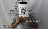 Seorang korban penyalahgunaan narkotika menutupi mukanya dengan poster motivasi saat menjalani rehabilitasi di Pusat Perawatan dan Pemulihan Adiksi Yayasan GEMA. (FOTO : ANTARA FOTO/SYIFA YULINNAS)