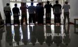 Sejumlah korban penyalahgunaan narkotika melaksanakan shalat ashar berjamaah saat menjalani rehabilitasi di Pusat Perawatan dan Pemulihan Adiksi Yayasan GEMA. (FOTO : ANTARA FOTO/SYIFA YULINNAS)