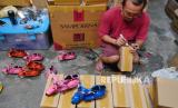 Pengerajin mengemas miniatur Vespa untuk ekspor di Walidi Craft, Yogyakarta, Jumat (17/9). Walidi Craft sempat menghentikan produksi miniatur saat PPKM Darurat lalu. Kini pengerajin miniatur kembali mendapat pesanan dari Belanda. Miniatur sepeda, Vespa, dan becak menjadi item pesanan mereka. Sedangkan untuk pasar lokal, pesanan miniatur masih sangat sedikit. (FOTO : Wihdan Hidayat / Republika)