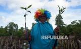 REPUBLIKA.CO.ID, SORONG -- Warga memegang bibit Mangrove di Kampung Maibo, Kabupaten Sorong, Papua Barat, Jumat (17/9/2021). Kegiatan tersebut untuk merestorasi kerusakan hutan Mangrove di Papua Barat seluas 40.000 hektar dan yang kritis sebesar 15.000 hektar.