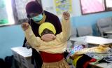 REPUBLIKA.CO.ID,JAKARTA -- Siswa kelas 1 bersama orang tuanya mencoba seragam sekolah ketika pengambilan seragam di SD Negeri Anyelir 1 Depok, Jawa Barat, Jumat (17/9).