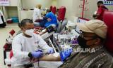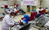 REPUBLIKA.CO.ID,BANDUNG -- Bertepatan dengan HUT ke-76 Palang Merah Indonesia (PMI), sejumlah warga melakukan donor darah di kantor PMI Kota Bandung, Jalan Aceh, Jumat (17/9).