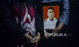 Kerabat memegang bingkai foto Pilot Rimbun Air Kapten Agithia Mirza saat prosesi pemakaman di TPU Taman Bahagia, Bogor, Jawa Barat, Jumat (17/9). Kapten Agithia Mirza meninggal dunia setelah Pesawat Rimbun Air dengan nomor registrasi PK OTW yang dikemudikannya bersama Co Pilot, M. Fajar Dwi Saputra serta Teknisi, Utra Iswahyudi hilang kontak dan terjatuh di Pegunungan Intan Jaya saat dalam perjalanan penerbangan dari Bandara Nabire menuju Sugapa, Kabupaten Intan Jaya. (FOTO : Republika/Putra M. Akbar)