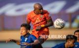 Pesepak bola Persiraja Banda Aceh Paulo Henrique (tengah) menyundul bola ke arah gawang PSIS Semarang dalam pertandingan pekan ketiga Liga 1 2020-2021 di Stadion Wibawa Mukti, Cikarang, Kabupaten Bekasi, Jawa Barat, Sabtu (18/9/2021). Pertandingan dimenangkan PSIS Semarang dengan skor 3-1. (FOTO : Antara/Aditya Pradana Putra)